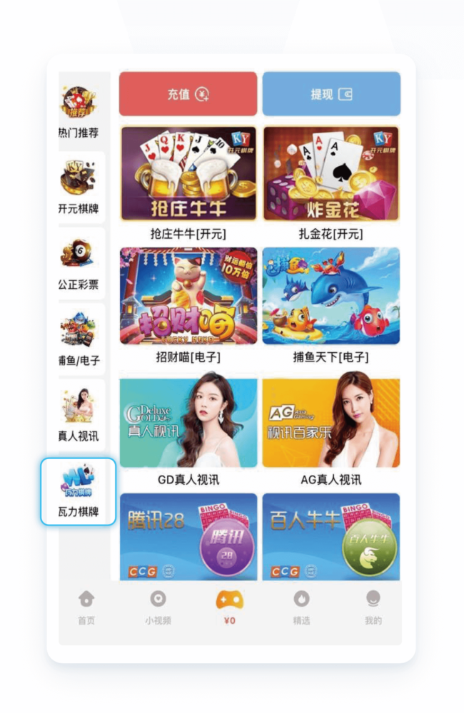 瓦力游戏提供棋牌、体育、真人、渔机、彩 票、老⻁机全方面的游戏整合服务,API接一 次全搞定!